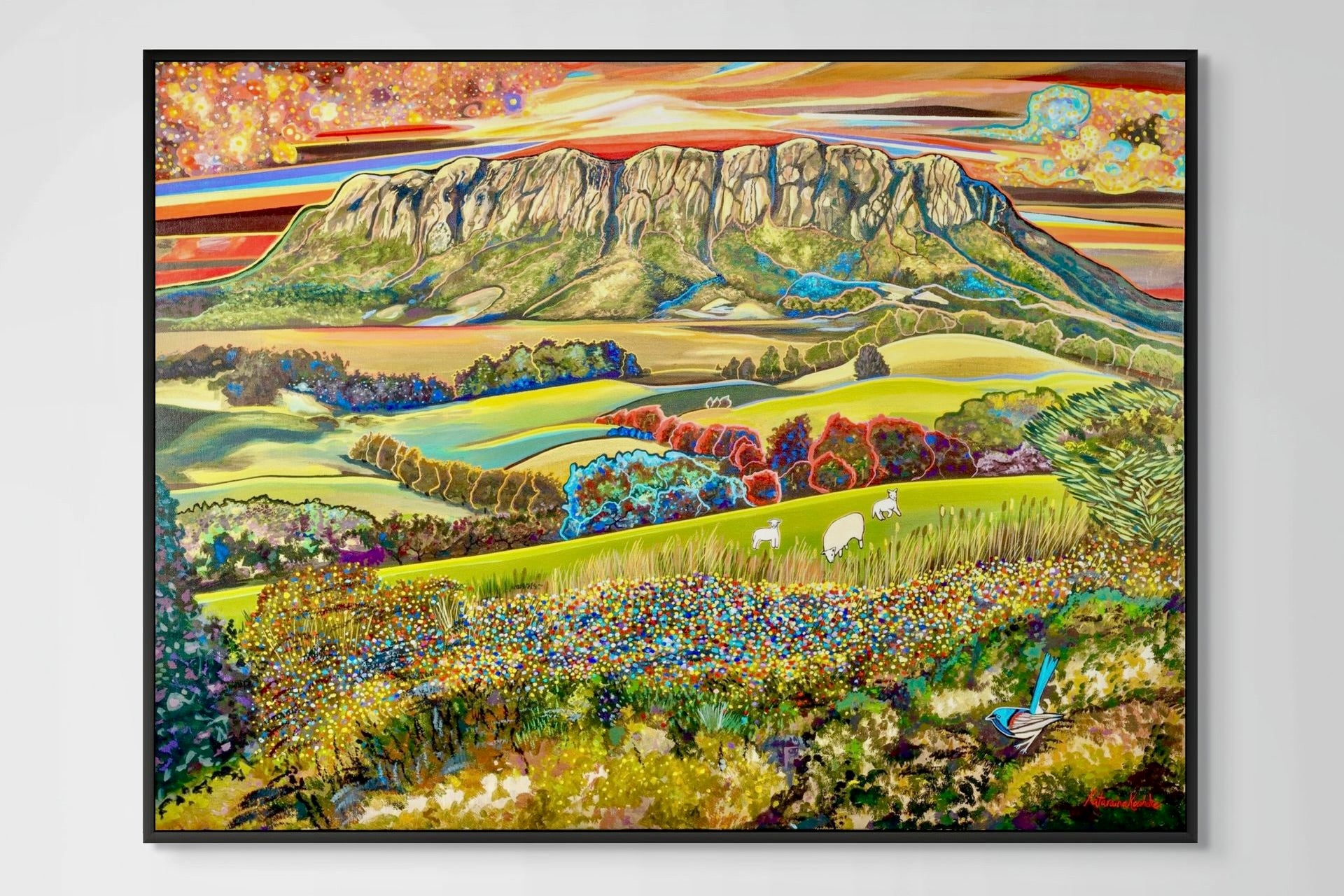 Mt Roland has been a part of my life since I was a young child, and she continues to captivate me with every passing glance. We often stop along the country side roads surrounding Mt Roland to view her monolithic stature, it’s one of my favourite places to stop - adorned with ever-changing cloud-scapes, sunsets, rain, snow, fog or sunshine – we always see her in a new light. However, I chose to portray Mt Roland with her brilliant spring time colours and with the beautiful farmland that surrounds it.
