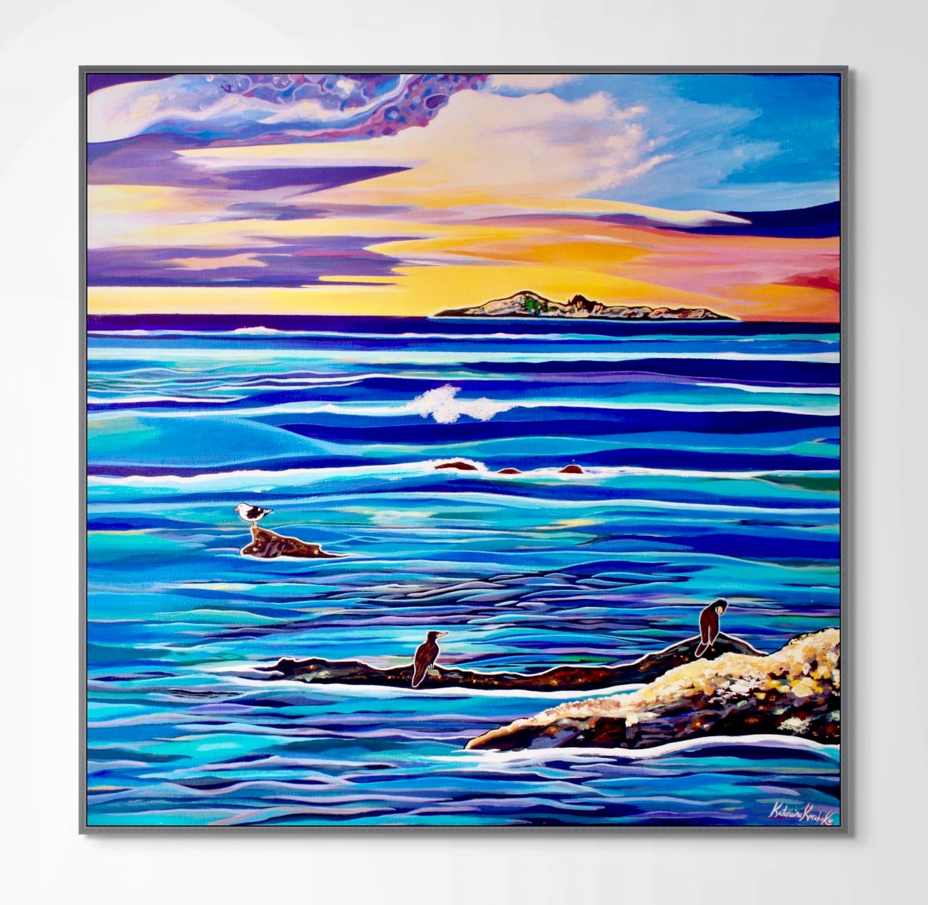 Sisters Beach shore looking out to Sisters Island, with two cormorants and a sea goal perched on rocks in the fore ground, it's a place that has become a true sanctuary for me. Perhaps you, too, have cherished memories of strolling along the beach, your gaze fixed upon the captivating Sisters Beach Island. It is undeniably a remarkable location, imbued with a special kind of magic.
