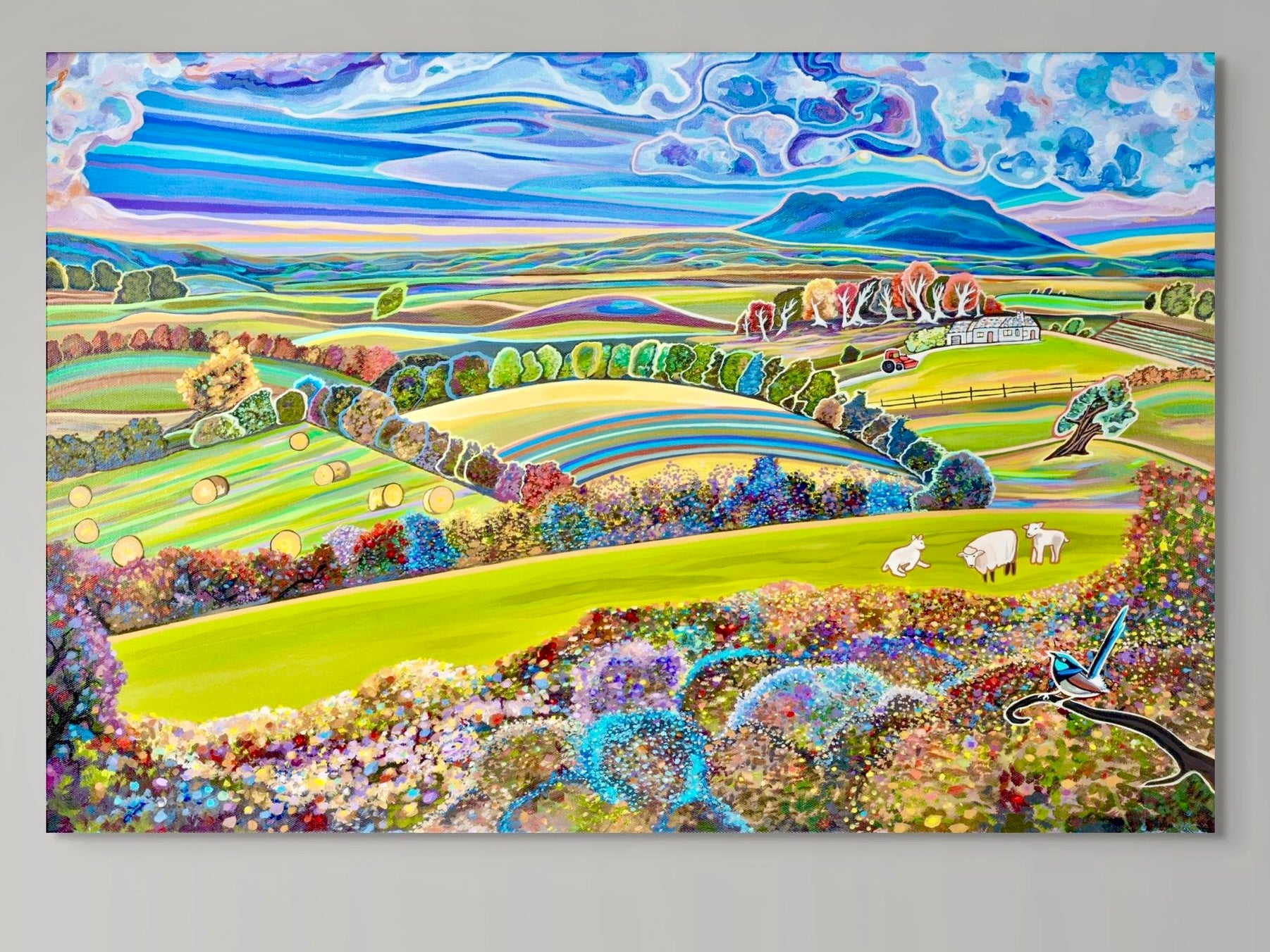 The artwork I designed and painted showcases the magnificent Quamby Bluff, a stunning mountain situated in Northern Tasmania within the Tasmanian Wilderness World Heritage Area.