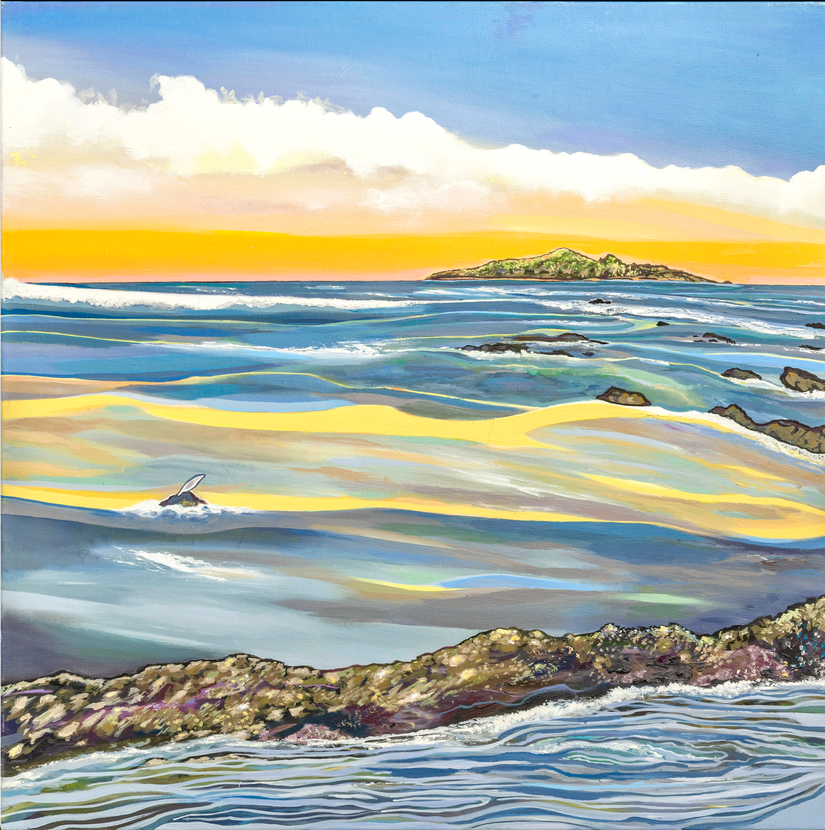 My first venture into painting using only oils, a departure from my usual acrylics. I’ve walked the full length of Sisters beach many times over the few years I lived there, and witnessed the spectacular sight of the sun rising directly behind the Sisters Beach island. Therefore, I wanted to capture those early moments just before the sun appears in this artwork.